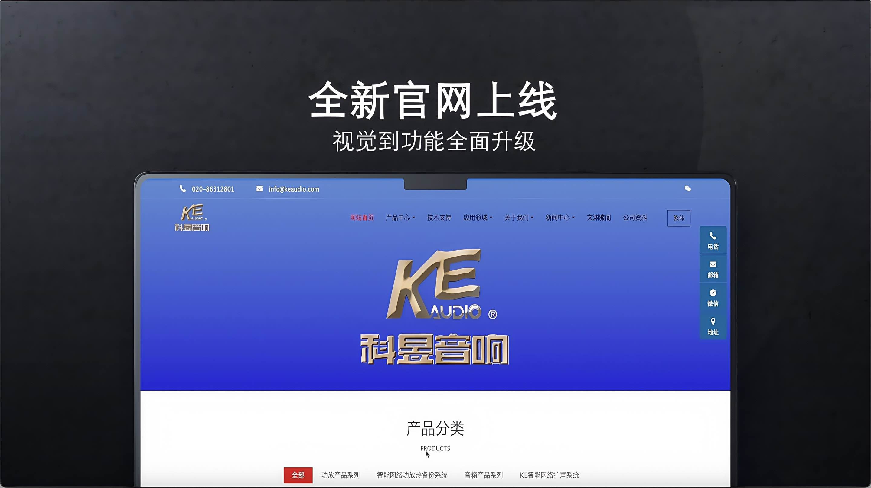 為契合公司戰略發展,提升品牌影響力。科昱音響官網www.keaudio.cn全新升級上線啦!從視覺到功能全面升級,旨在為大家帶來更清晰、更高效的瀏覽體驗。從頁面布局到內容分類,從功能設置到信息呈現,我們都做了細致優化,讓您能更快速地找到所需信息,更全面地了解科昱的產品信息、技術成果和最新資訊。